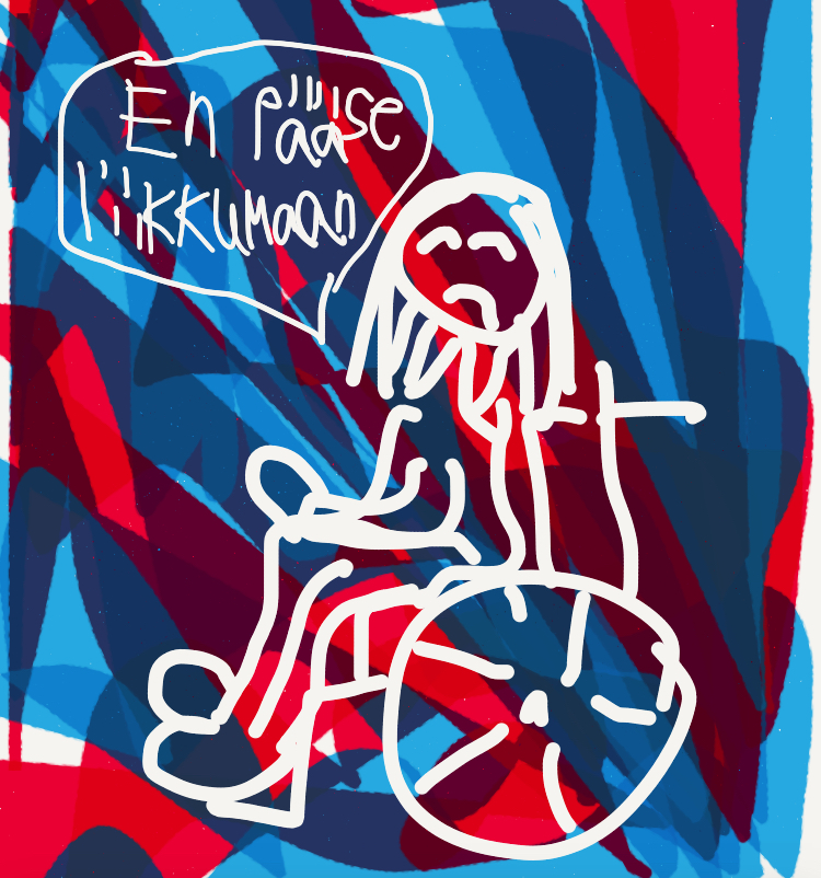 Vaikka lähtökohtaisesti olenkin aina tosi kiitollinen avusta, mitä olen saanut esteellisissä tapahtumissa osallistuakseni, se ei voi olla jokaisen tapahtuman lähtökohta. Esimerkiksi diat esitetystä koulutuksesta ei ole sama asia kun osallistua koulutukseen ja verkostoitua. Tällainen erityisjärjestely kuulostaa lähinnä alle viivaavan sitä, että itsellä ei ole mahdollisuutta osallistua niin kuin muut. Monesti esteellisiä tilanteita koitetaan paikata pahoittelemalla. Se on toki ymmärrettävä reaktio ja tavallaan hyväkin asia. Itse kuitenkin koen, että paljon tärkeämpää olisi pyrkiä tajuamaan kokonaisvaltaisesti, että kyseessä on ihmisryhmään kohdistuva systemaattinen syrjintä johon on syytä puuttua välittömästi, jotta voitaisiin edistää tasa-arvoa. Pahoittelu ei siis itsessään muuta tilannetta vaan siitä tulee sellainen olo, että olet säälin kohteena ja ongelma ei itsessään sillä ratkea.